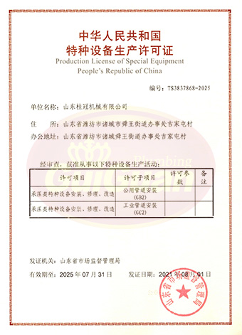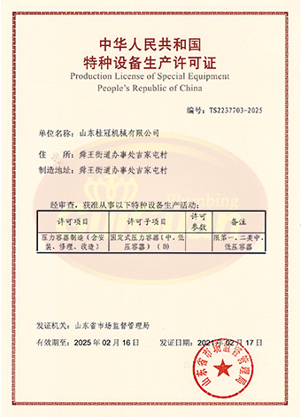 山東桂冠機械有限公司成立于2008年,注冊資金1600萬元,現(xiàn)有員工200多人,中高級技術管理人員45人,占地面積27000多平方米,生產(chǎn)車間面積12000多平方米。公司具備壓力容器產(chǎn)品的設計、制造(證書編號為:TS2237703-2025)、壓力管道安裝(證書編號為TS3837607-2025)全套壓力容器資質(zhì);通過國家ISO9001質(zhì)量管理體系認證、美國ASME認證、歐盟CE認證;擁有建筑安裝機電工程專業(yè)承包叁級資質(zhì)、建筑工程施工總承包叁級資質(zhì)及對外貿(mào)易經(jīng)營出口權…